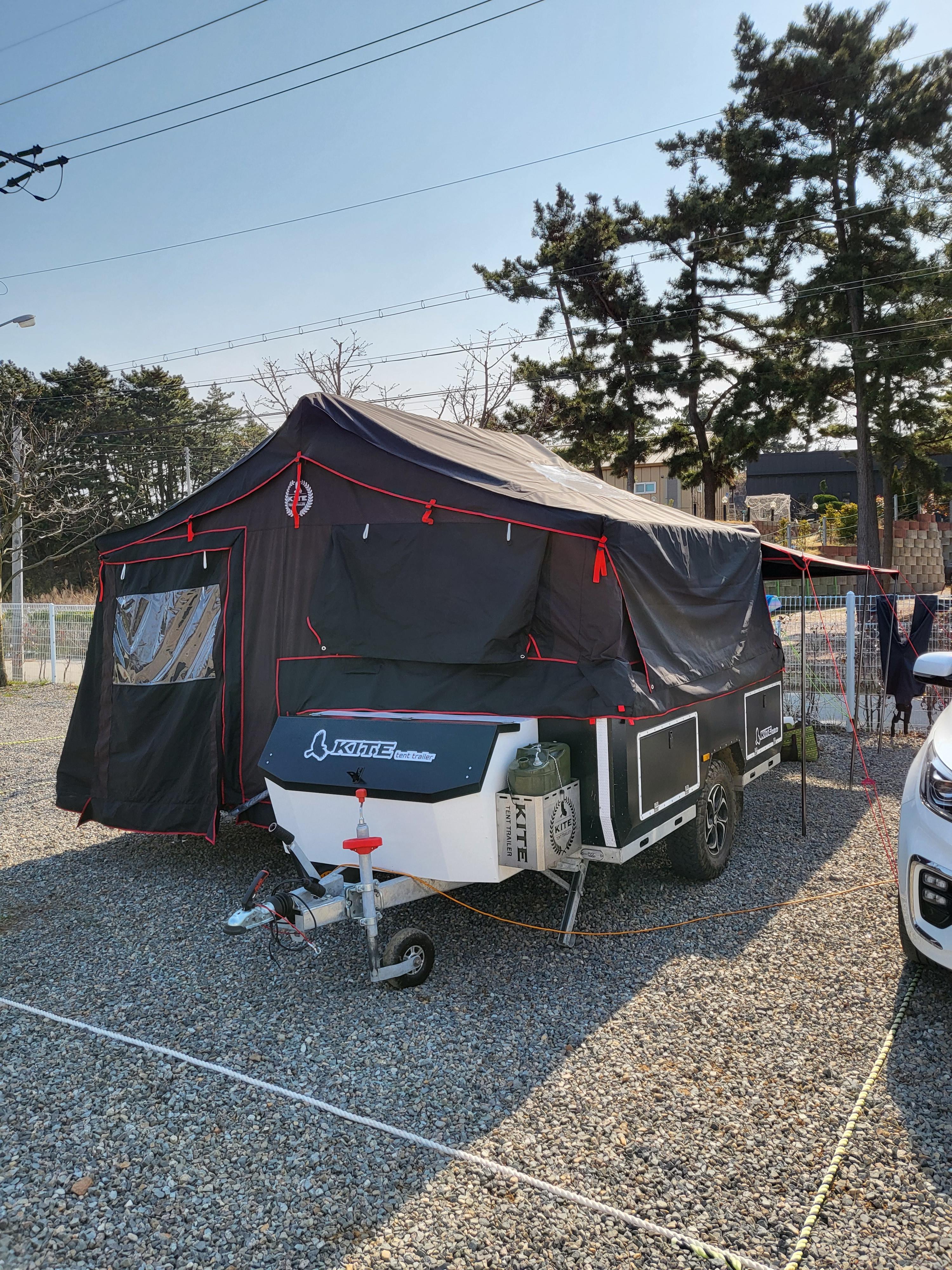 서둘러 텐트트레일러를 설치하고 세팅을 진행합니다. 한편으로는 아이들이 사용한 장비를 세척하고 말려두는 일도 잊지 않았습니다.