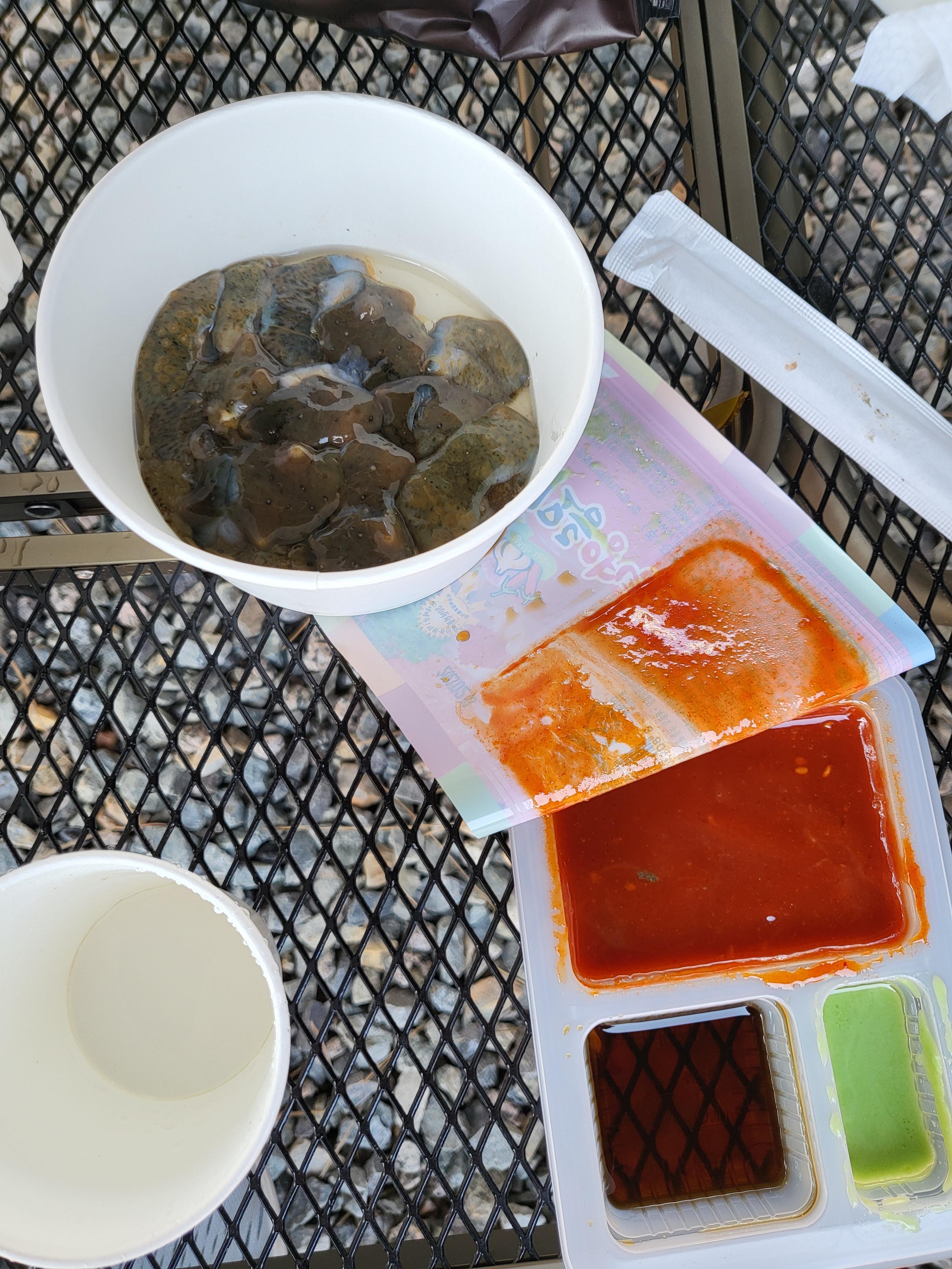 캠핑장 관리하는 분들이 번개같이 뛰어와서 입장불가하다고 난리를 하는통에 아쉽지만 캠핑장 밖으로 아이들을 불러 인사를 시켰고 용돈도 주고 가셨네요. 키조개 관자도 잔뜩 주고 가셔서 너무 죄송하고 감사했습니다.